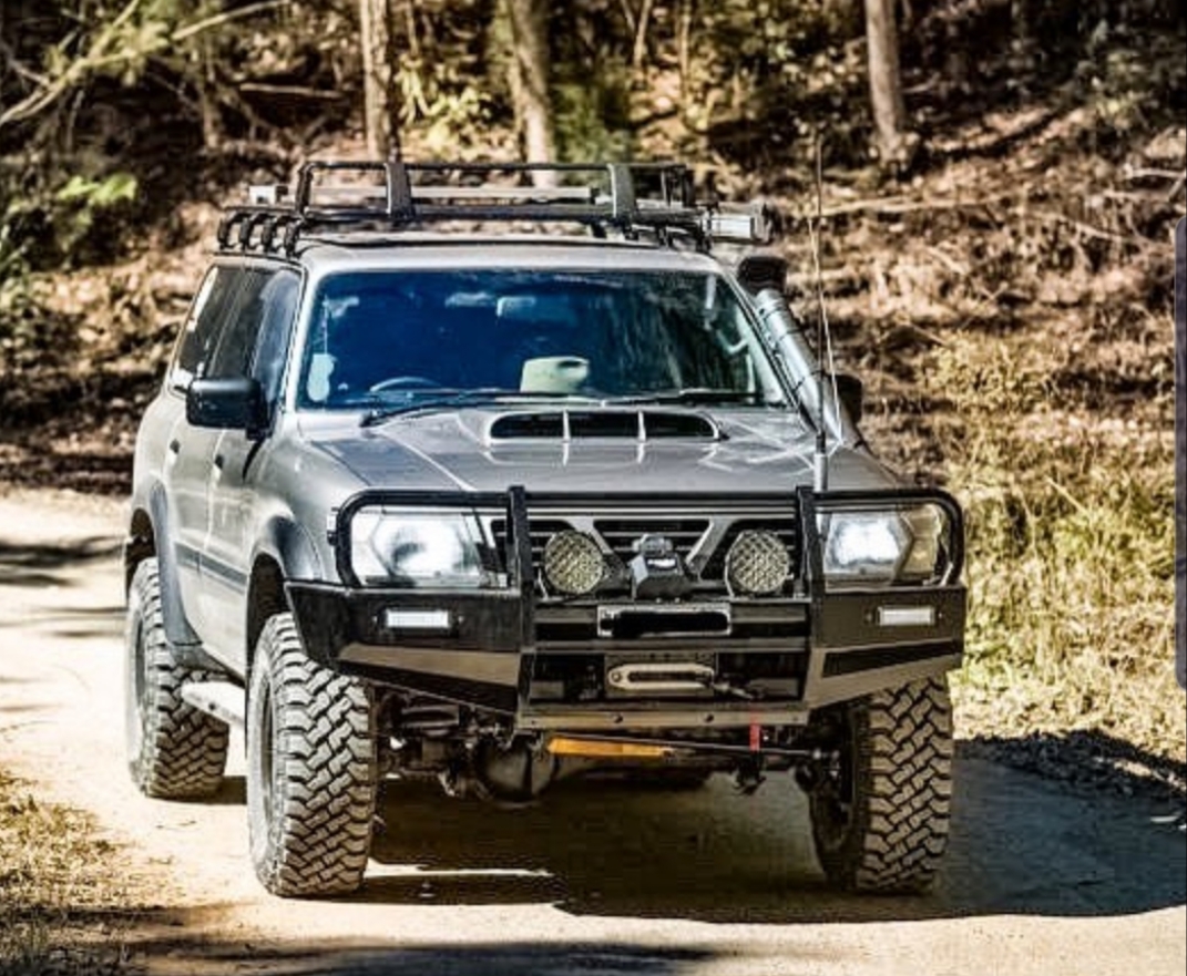 Nissan GU TD42 TMIC. Our cooler kit for the GU Nissan Patrol is the answer to those wanting the best possible intercooling solution for their TD powered GU Troll. Utilizing a European light weight laser welded tube n fin core measuring in at 606mm x 300mm x 76mm. These cores are the pinnacle of core technology and are the most efficient cores we have come across in our 25+ years of cooler design and manufacture. It is why so many using our intercooler systems are setting new records on the track and dyno. The core is coupled with our light weight smooth 3mm sheet alloy tanks and Tig welded in house by master craftsmen. These tanks are the culmination of years of Motorsport development ensuring excellent flow rates while directing even flow to the whole area of the core maximizing efficient thermal transfer rates. The cooler is further assisted by the use of an under slung Spal 10" fan. This provides unparalleled cooling efficiency at low vehicle speeds. Perfect for when you are doing low range work.