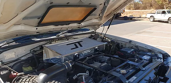 Finally we have designed and built an incredibly efficient fan forced top mounted cooler to suit the HZJ105 Cruiser. The 105 series is a fantastic vehicle, however without an efficient intercooler system they can be a bit unexciting. We have solved this issue with one of the most efficient intercooler systems available. Featuring the latest generation 3 lightweight European tube n fin core. The cooler is fan forced with a underslung Spal fan to provide excellent thermal transfer rates at low vehicle speeds as with all our popular top mounted systems.